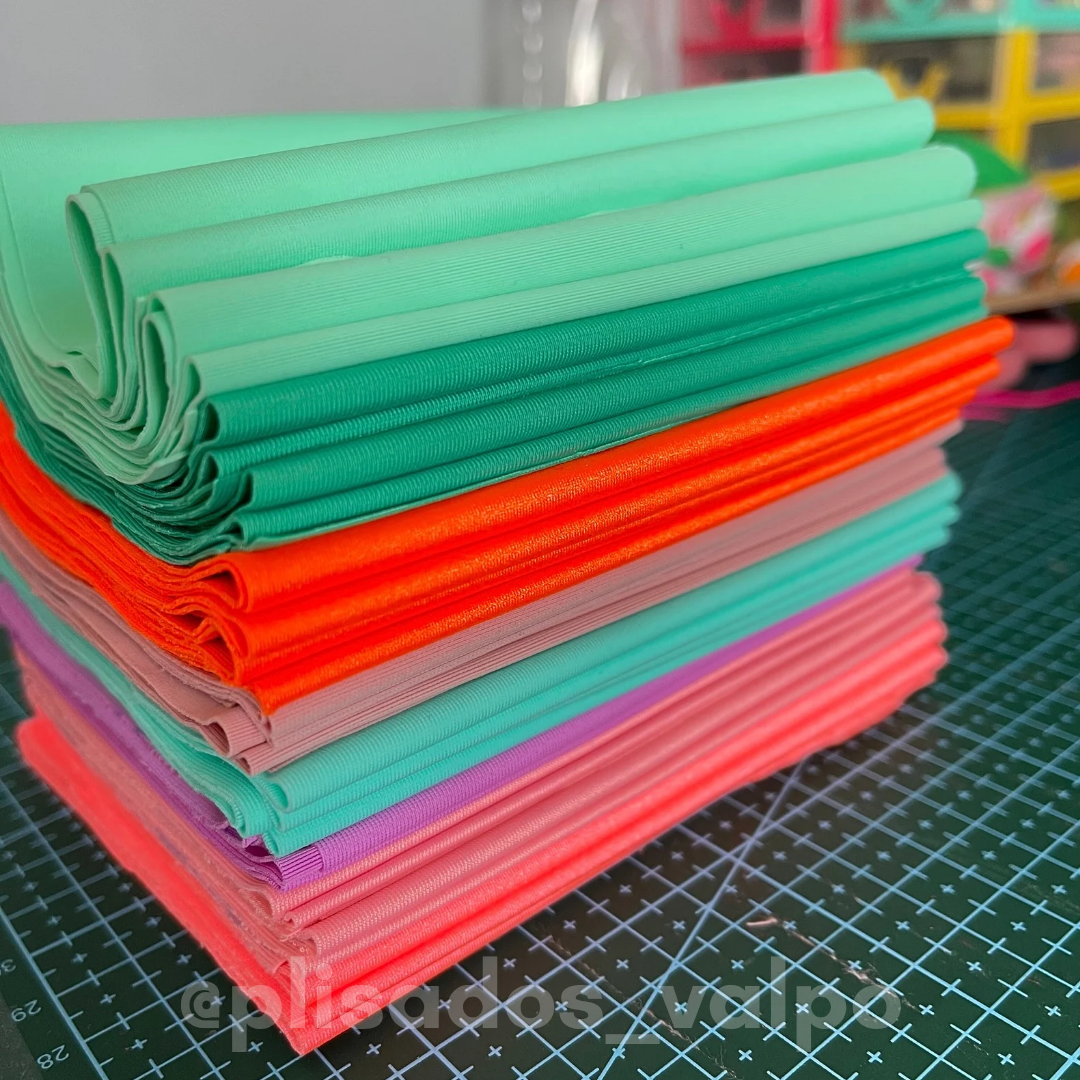 Este lote contiene 10 cortes de lycra colores lisos al azar. Puedes armar scrunchies grandes (no maxi), rumbas y lazos.